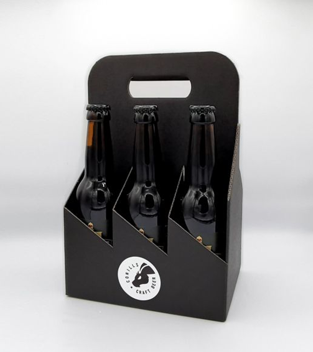 Cerveza negra de estilo Irish Stout, en el vaso se presenta con un color negro intenso bajo una capa cremosa de espuma persistente de finas burbujas.